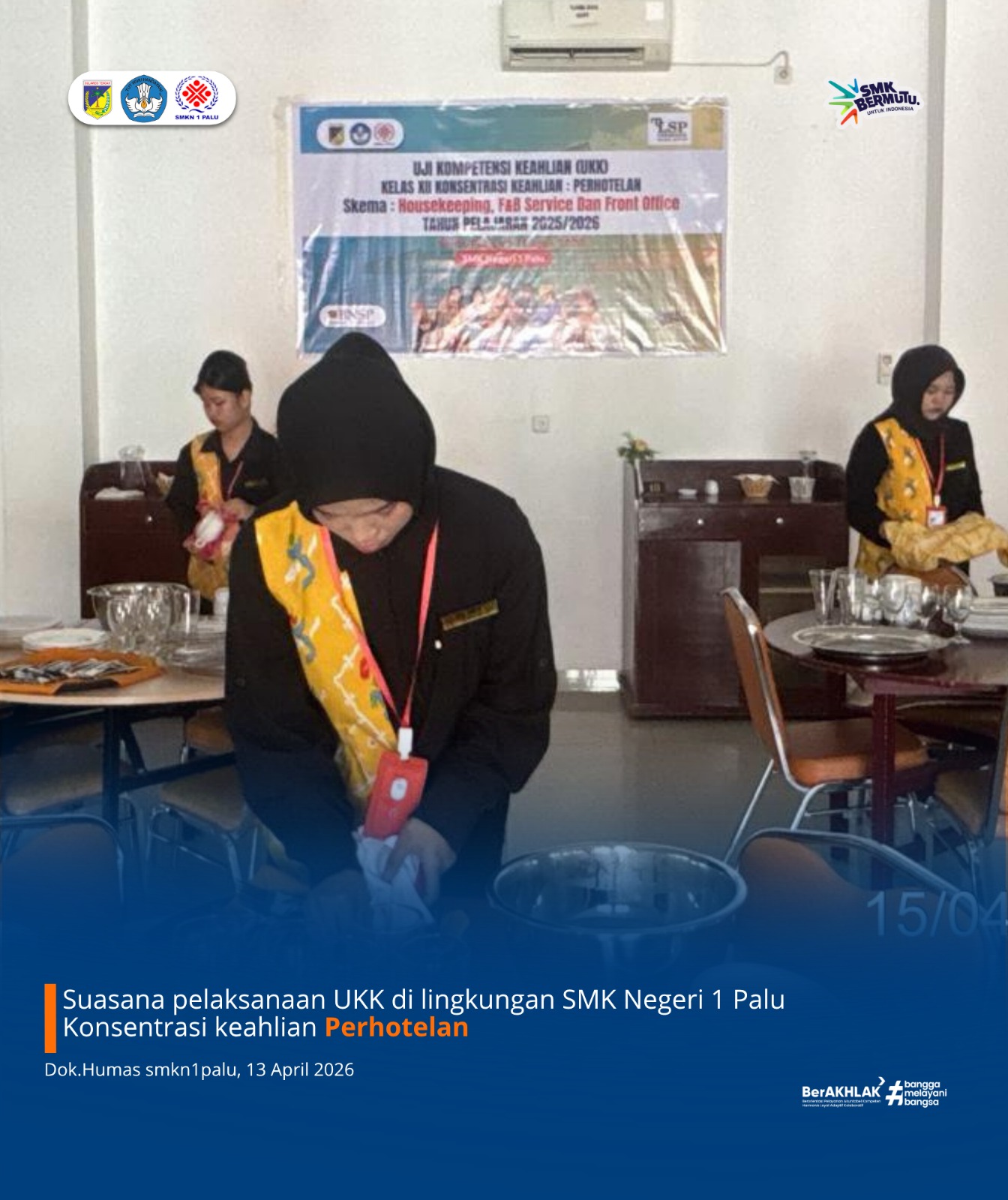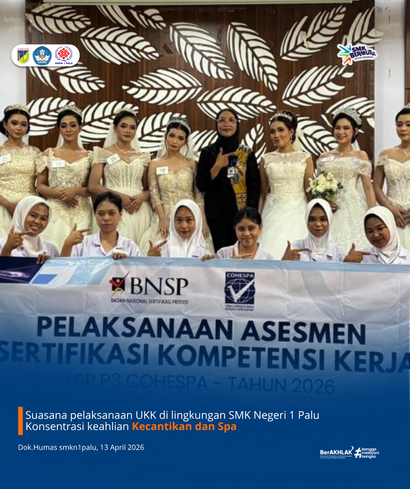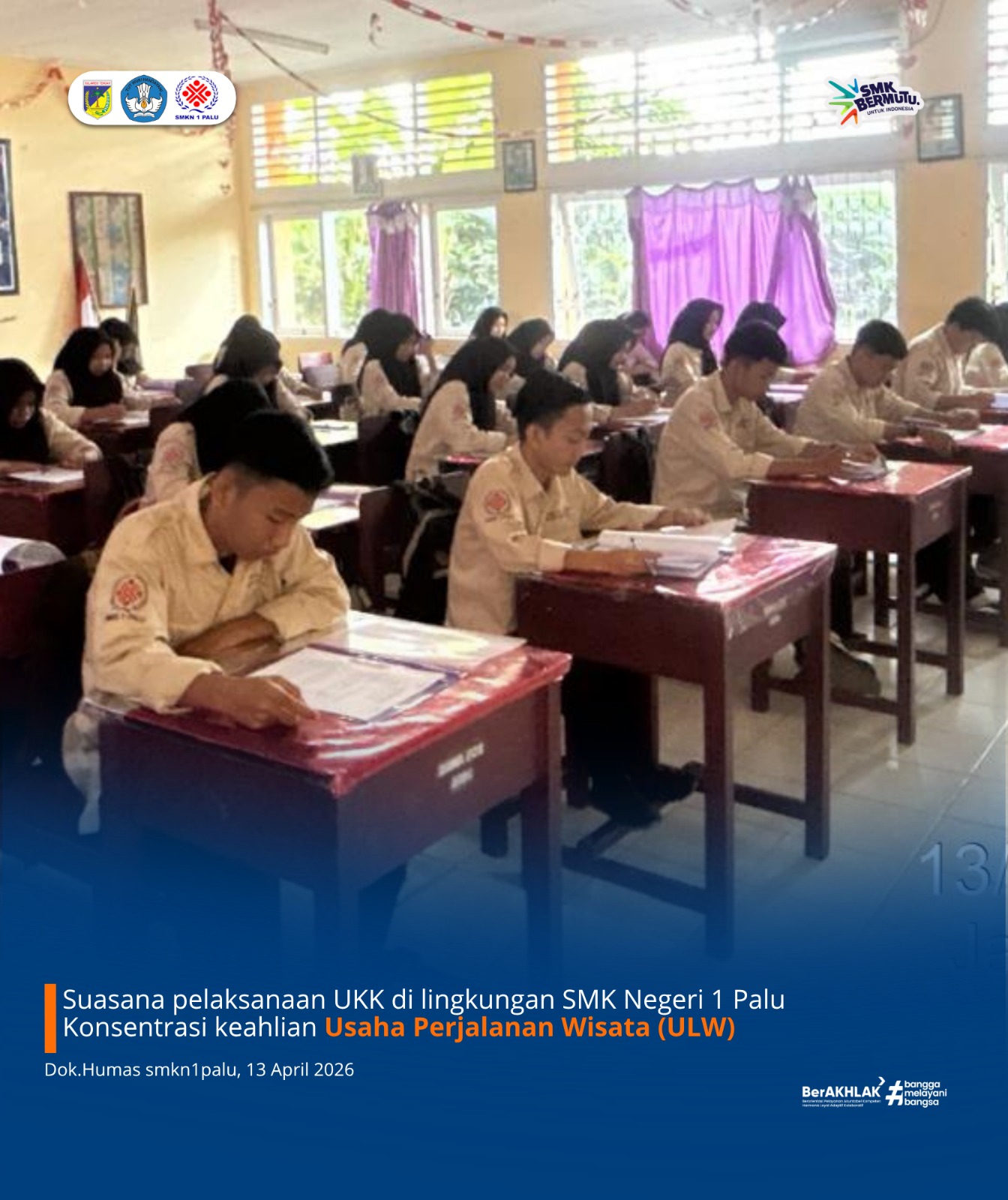 Palu — SMK Negeri 1 Palu melaksanakan Uji Kompetensi Keahlian (UKK) bagi peserta didik kelas XII Tahun Pelajaran 2025/2026 sebagai bentuk evaluasi akhir untuk mengukur capaian kompetensi sesuai bidang keahlian masing-masing.
